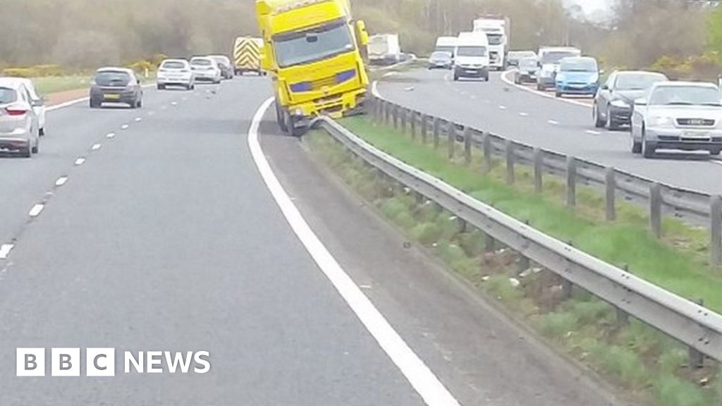 M1 Lorry Crash Lorry Removed From Central Reservation Bbc News
